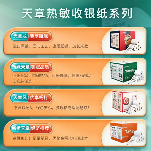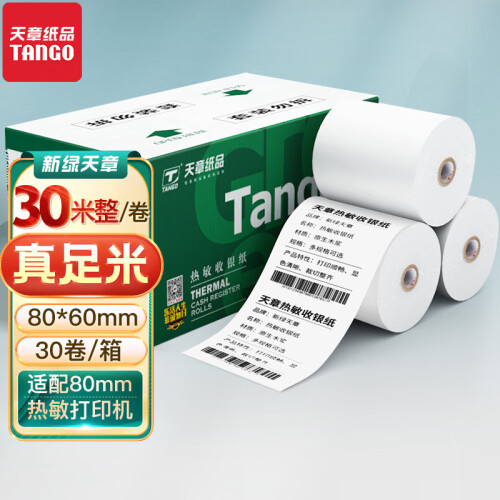 当前的位置: 首页 > 今日值得买 > 天章(TANGO)新绿天章热敏纸80*60mm收银纸 80mm打印纸收银小票纸30卷 30米/卷 餐饮厨房打单收银机专用纸