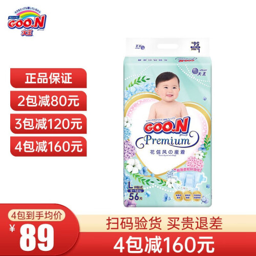当前的位置: 首页 > 今日值得买 > 大王(GOO.N)花信风纸尿裤婴儿尿不湿透气尿片尿裤男女宝贝通用隔尿垫吸水尿布 纸尿裤 L56片(9-14KG)