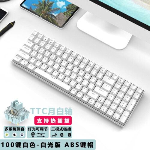 当前的位置: 首页 > 今日值得买 > RK100 TTC月白轴三模蓝牙无线机械键盘支持热插拔有线电脑笔记本办公家用二色键帽客制化96配列100键白色白光