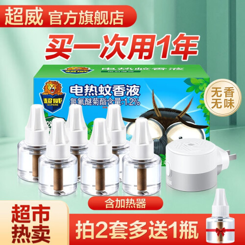 当前的位置: 首页 > 今日值得买 > 超威电热蚊香液驱蚊液家用婴儿儿童灭蚊器电蚊香加热器补充液 【实惠装】6瓶1器(驱蚊330晚)