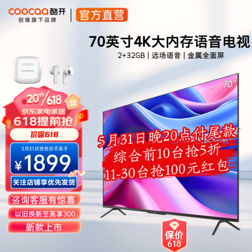当前的位置: 首页 > 今日值得买 > 酷开(coocaa)酷开创维电视S70 70英寸 4K超清 2+32G大内存远场语音无频闪蓝光金属全面屏平板电视机以旧换新S70 70英寸护眼全面屏 S70