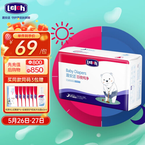 当前的位置: 首页 > 今日值得买 > 露安适(Lelch)纯净系列(原体育之星)日用/夜用纸尿裤婴儿尿不湿超薄透气干爽 夜用M码32片