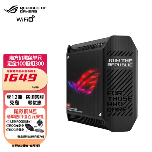 当前的位置: 首页 > 今日值得买 > 华硕(ASUS)ROG魔方幻三频万兆电竞分布式路由器|全屋千兆无线路由器|WiFi6|全屋覆盖电竞 魔方幻-耀石黑单支