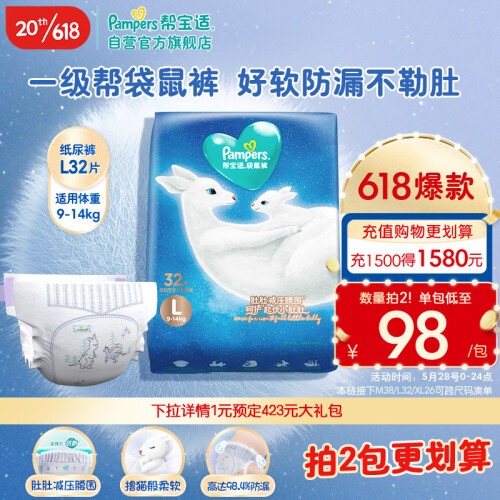 当前的位置: 首页 > 今日值得买 > 帮宝适一级帮袋鼠裤纸尿裤L32片(9-14kg)大号婴儿尿不湿夜用
