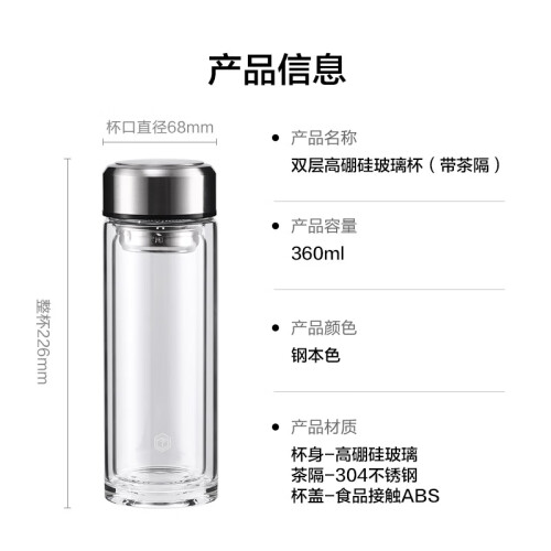 当前的位置: 首页 > 今日值得买 > 京东京造 双层加厚玻璃杯 高硼硅带茶隔水杯 简约304茶隔泡茶杯男士 360mL