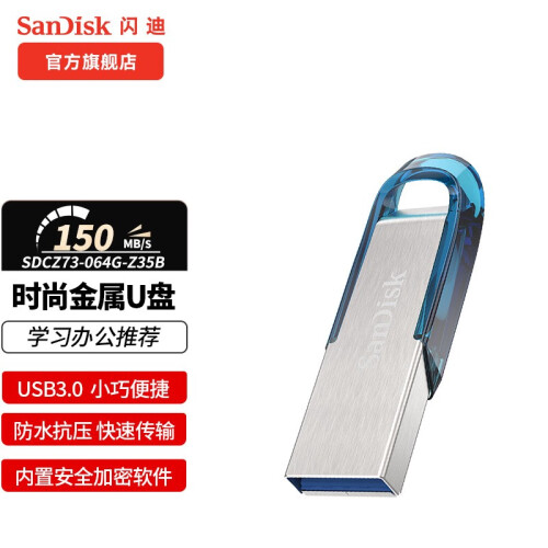 当前的位置: 首页 > 今日值得买 > 闪迪(SanDisk) SanDisk闪迪U盘 USB 酷铄黑银金属外壳高速读写加密保护车载稳定兼容 CZ73 蓝 USB3.0 32G