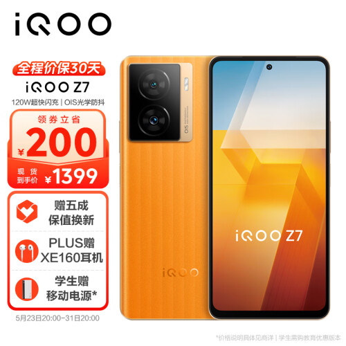 当前的位置: 首页 > 今日值得买 > vivo iQOO Z7 8GB+128GB 无限橙 120W超快闪充 等效5000mAh强续航 6400万像素 OIS光学防抖 5G手机iqooz7