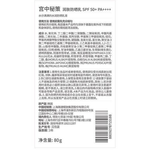 当前的位置: 首页 > 今日值得买 > 宫中秘策 儿童防晒霜 防晒乳液80g 婴儿宝宝物理温和防晒SPF50PA++++韩国原装进口户外防晒