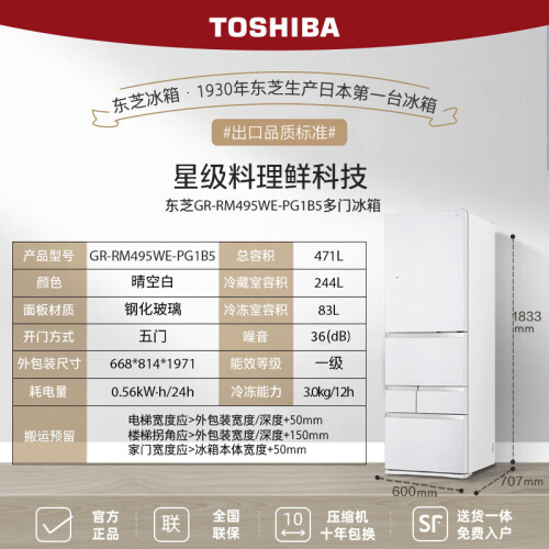 当前的位置: 首页 > 今日值得买 > 东芝(TOSHIBA)超薄五门多门自动制冰高端电冰箱一级能效风冷无霜日式小户型家用GR-RM495WE-PG1B5 晴空白