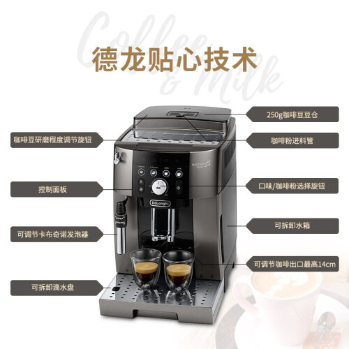 当前的位置: 首页 > 今日值得买 > 德龙(Delonghi) 全自动咖啡机家用15Bar泵压意式浓缩美式拿铁 原装进口一键制作M2 TB 卡布奇诺可调式打奶泡 自动清洗 13档研磨豆粉两用