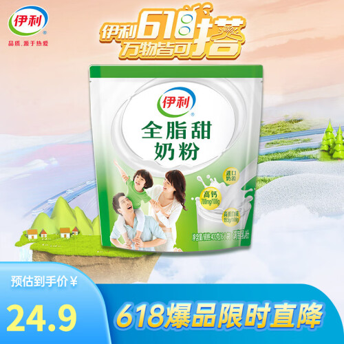 当前的位置: 首页 > 今日值得买 > 伊利全脂甜奶粉400g袋装 成人奶粉 高钙高蛋白 维生素 全家早餐16*25g