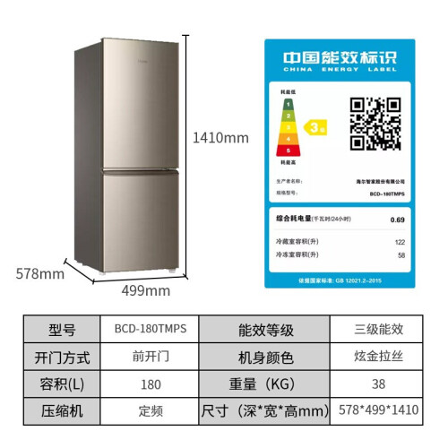 当前的位置: 首页 > 今日值得买 > 海尔(Haier)冰箱180升双门两门小冰箱小型家用 节能省电冷藏冷冻 家用宿舍租房 BCD-180TMPS