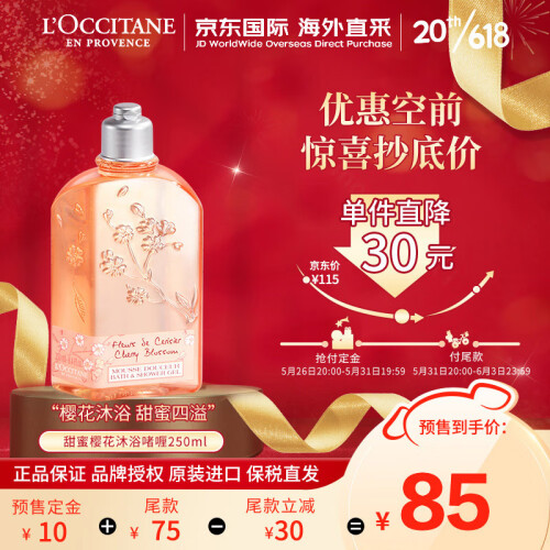 当前的位置: 首页 > 今日值得买 > 欧舒丹(L'OCCITANE)甜蜜樱花沐浴啫喱250ml 保湿 进口超市 法国进口 有无封口贴随机