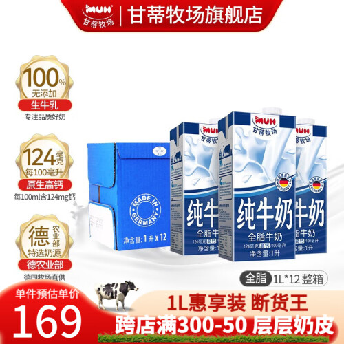 当前的位置: 首页 > 今日值得买 > 甘蒂牧场(MUH) 德国进口全脂纯牛奶1L*12盒 整箱装 儿童学生早餐奶 咖啡茶伴侣 全脂纯牛奶1L*12盒/箱