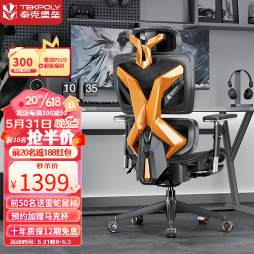 当前的位置: 首页 > 今日值得买 > 泰克堡垒泰克X6人体工学电竞椅男游戏椅子家用办公透气老板电脑椅可躺竞技 泰克X6-恒星橙-旗舰版