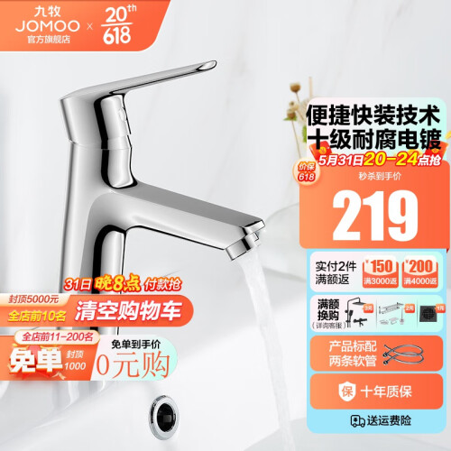 当前的位置: 首页 > 今日值得买 > 九牧(JOMOO)卫浴健康面盆自来水龙头洗手盆洗脸盆浴室坐式卫生间冷热简约龙头 32341-净铅健康龙头