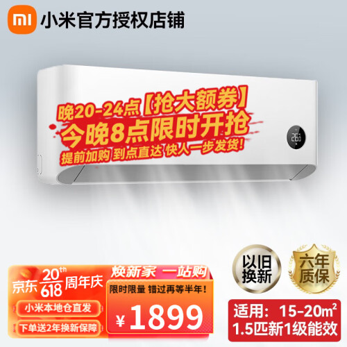 当前的位置: 首页 > 今日值得买 > 小米空调 米家变频冷暖空调 新能效 家用壁挂式卧室空调挂机 1.5匹互联网空调【1级能效】