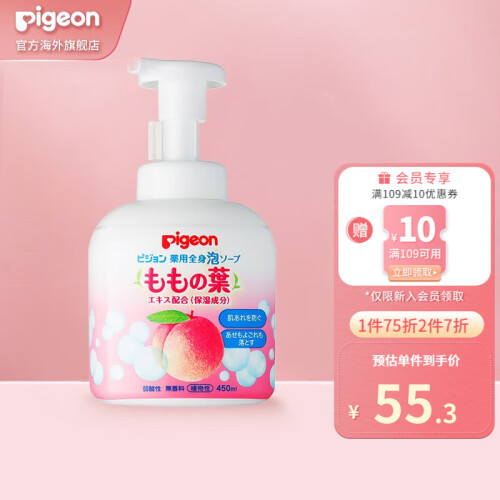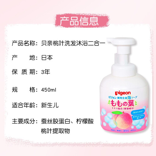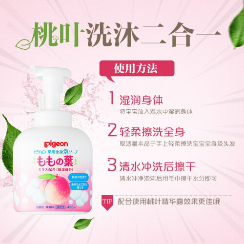 当前的位置: 首页 > 今日值得买 > 贝亲(Pigeon)桃叶婴儿童沐浴露洗发水二合一洗护沐浴含桃叶精华泡沫 【桃叶】洗沐二合一 450ml