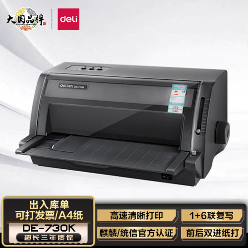 当前的位置: 首页 > 今日值得买 > 得力(deli)DE-730K 高速增值税发票针式打印机 发票出入库送货快递单办公打印机平推式针织打印机