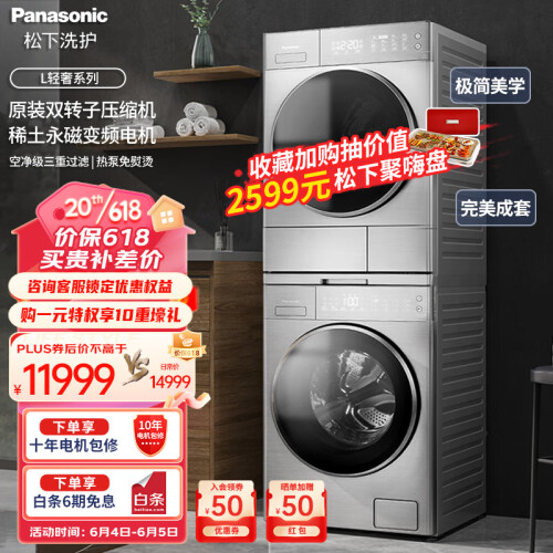 当前的位置: 首页 > 今日值得买 > 松下(Panasonic)轻奢变频洗烘套装 10kg全自动滚筒洗衣机+9kg热泵烘干机 【对标李佳琦直播间】 除菌 L165+9095T