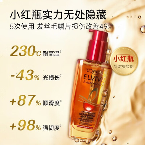 当前的位置: 首页 > 今日值得买 > 欧莱雅(LOREAL)奇焕润发护发精油 一抹柔顺 修护干枯 持久留香护理油 小红瓶100ml【两瓶装】