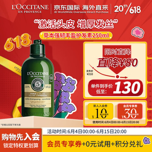 当前的位置: 首页 > 今日值得买 > 欧舒丹(L'OCCITANE)5合1草本菁纯强韧丰盈护发素250ml 滋养呵护发丝 法国原装进口