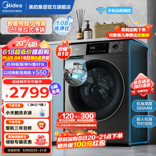当前的位置: 首页 > 今日值得买 > 美的(Midea)超薄款 滚筒洗衣机全自动 快净系列 V58 洗烘一体机 智能投放 消毒洗净螨除菌钛色 10公斤大容量 MD100V58WIT