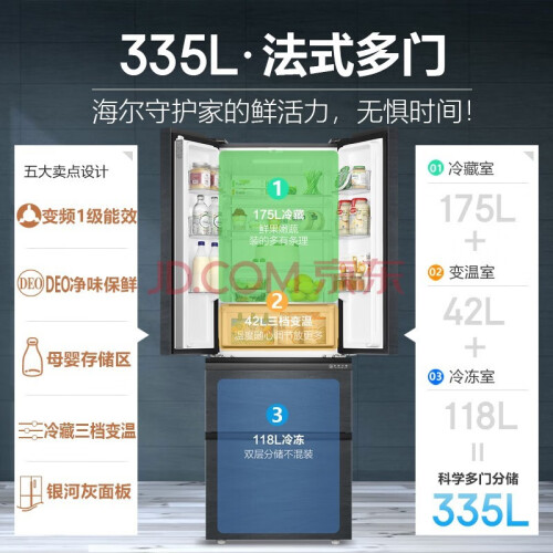 当前的位置: 首页 > 今日值得买 > 海尔(Haier)海尔冰箱342/335法式多门变频一级能效风冷无霜家用超薄智能WIFI节能省电冰箱 335升银河面板+母婴专区+DEO净味保鲜