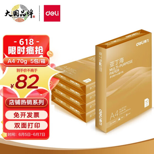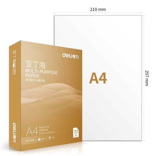 当前的位置: 首页 > 今日值得买 > 得力(deli)亚丁海 A4打印纸 双面加厚复印纸白纸 草稿纸 办公用纸 A4 5包/2500张【常规70g】