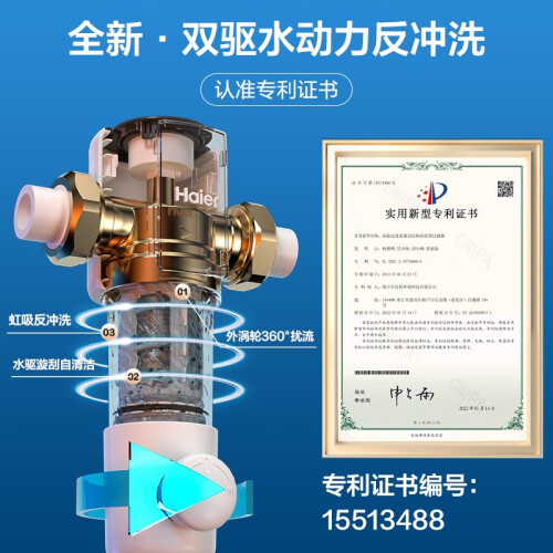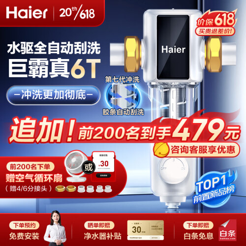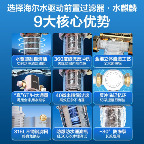 当前的位置: 首页 > 今日值得买 > 海尔(Haier)前置过滤器水驱动反冲洗双驱全自动清洁净水器全屋中央家用大通量 HP60-水麒麟6T水动力顶配旗舰款