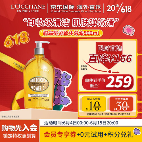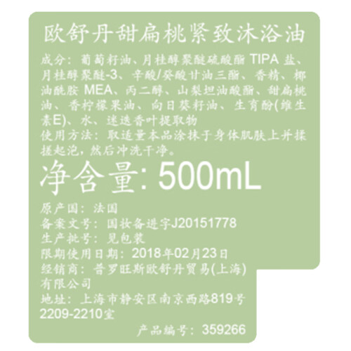 当前的位置: 首页 > 今日值得买 > 欧舒丹(L'OCCITANE)甜扁桃紧致沐浴油500ML 温和清洁 润而不腻 法国原装进口