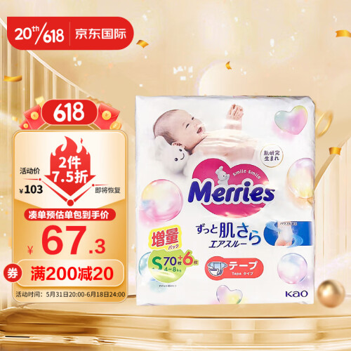 当前的位置: 首页 > 今日值得买 > 花王(Merries)妙而舒婴儿腰贴纸尿裤尿不湿 增量装S76片(4-8kg)日本进口