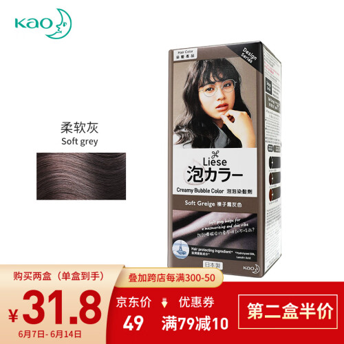 当前的位置: 首页 > 今日值得买 > 花王(KAO)Liese泡泡染发剂 泡沫染发膏莉婕植物泡泡染家用男女 榛子雾灰色(柔软灰)