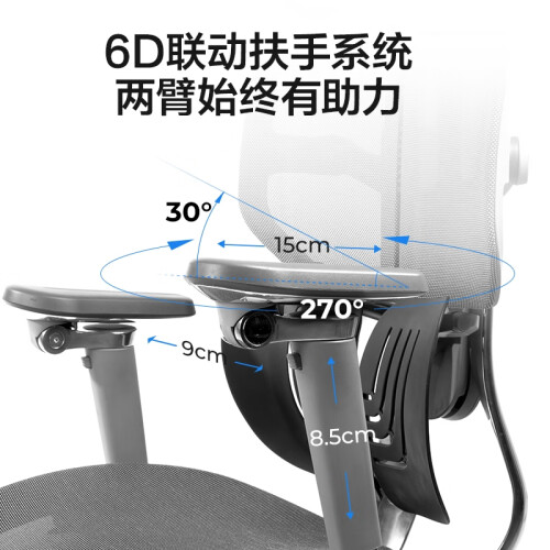 弧度可调悬浮腰托,柔软包裹腰部两侧,顶腰力度由你定。3档弧度调节,6cm椅背升降。