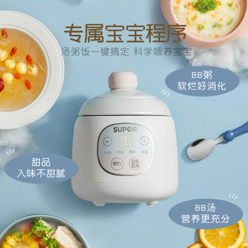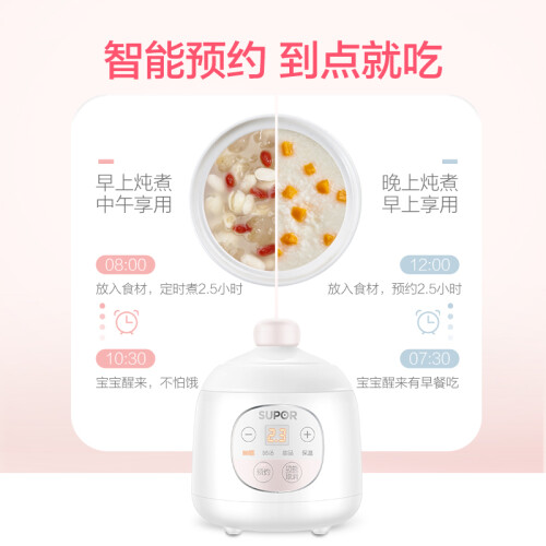 东方凝脂白瓷,温润如玉守护新生,1300°C高岭土烧制白瓷,莹润顺滑,易洁不串味。宝宝专属程序,搭配科学研究食谱,汤粥饭一键搞定,辅食制作省心又有营养。烹饪完自动保温,长久守候温暖汤粥,全天长效保温,辅食无需反复加热。