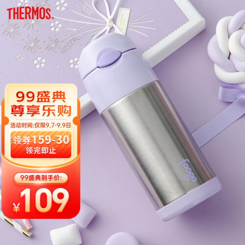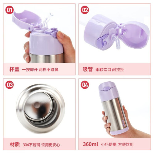 THERMOS 膳魔师 儿童316L不锈钢保温杯,全拆分结构,大口径杯口,一体式硅胶吸管,清洗无死角。高端锁温工艺,缔造保温传奇。可触式开关,一按即开,可轻松单手操作。
