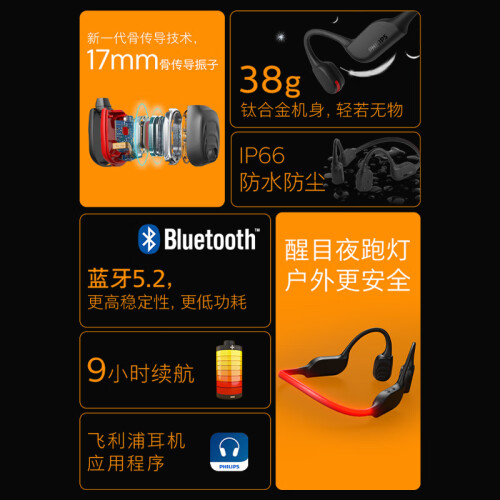 当前的位置: 首页 > 今日值得买 > 飞利浦(PHILIPS)骨传导蓝牙耳机运动无线耳机骨传导耳机跑步骑行夜跑灯带TAA7607