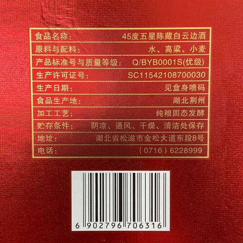 白云边五星陈藏是白云边酒业出产的一款中端45度星级系列的浓酱兼香型白酒。“白云边”得名于素有“诗仙”、“酒仙”之称的李白的“南湖秋水夜无烟,耐可乘流直上天,且就洞庭赊月色,将船买酒白云边”这一脍炙人口的千古诗篇。曾在1979年、1984年、1989年就连续蝉联全国白酒质量评比银质奖,白云边酒集茅台的酱香、泸州老窖的浓香、汾酒的清香于一体,是中国浓酱兼香型白酒的典型代表。这款酒采用金色密封瓶帽,凸显酒液晶莹剔透之感的水晶玻璃瓶,瓶身拥有金色白云边字体和星级标示。这款产品甄选优质小麦和高粱,再配以当地优质水源,采用九次蒸煮、八次发酵、七次取酒、一年生产周期的传统酿造工艺,精心酿造而成。