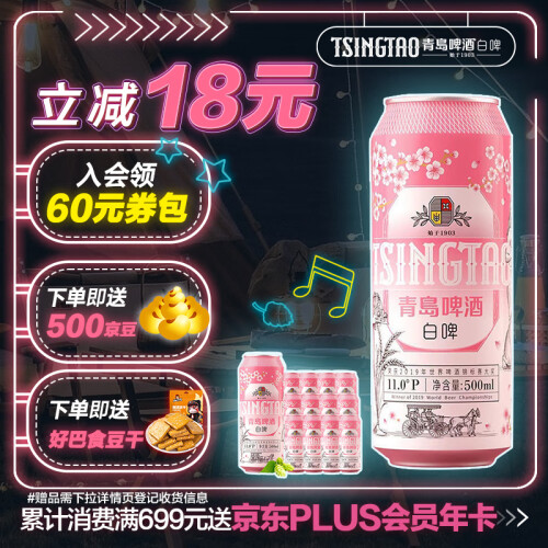 当前的位置: 首页 > 今日值得买 > 青岛啤酒(TsingTao)全麦白啤(2020版) 精酿啤酒 11度 500ml*12听 整箱装(樱花版)