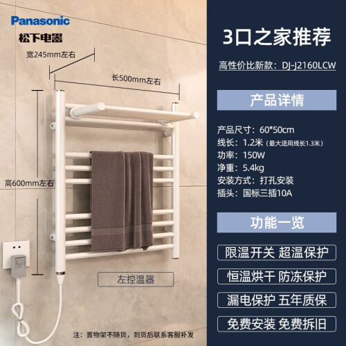 当前的位置: 首页 > 今日值得买 > 松下电热毛巾架 加热智能烘干架卫生间置物架浴室毛巾架 电毛巾架家用 【3-4人】白色左温控DJ-J2160LCW