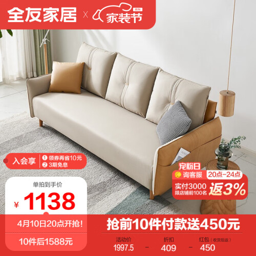 当前的位置: 首页 > 今日值得买 > 全友家居北欧沙发现代简约科技布艺沙发小户型客厅家具布艺沙发102668 米色|B科技布沙发(三人位)
