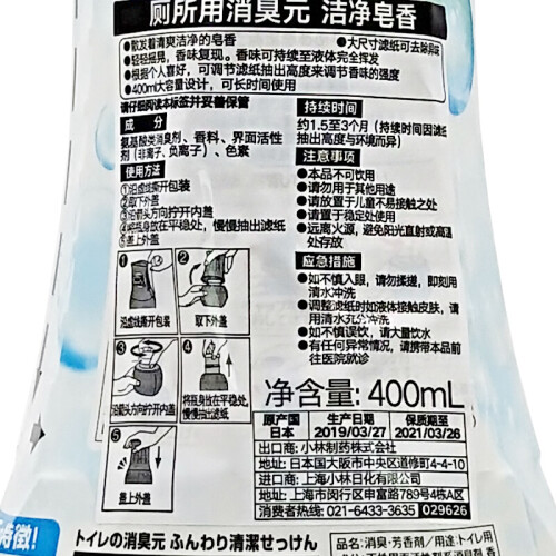 当前的位置: 首页 > 今日值得买 > 小林制药 空气清新剂厕所除臭浴室去味房间消臭元洁净皂香400ml