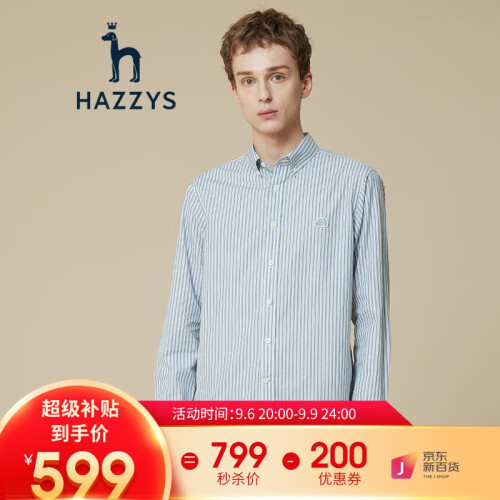 当前的位置: 首页 > 今日值得买 > 哈吉斯(HAZZYS)男装 春秋款男士衬衣条纹长袖衬衫男ASCZK12CK04 浅绿色LG 180/100A 50