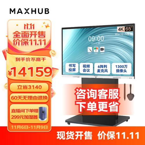 当前的位置: 首页 > 今日值得买 > MAXHUB视频会议平板一体机教学触控会议电视书写投屏内置摄像头麦克风新锐Pro65 Win10+商务支架+传屏+笔
