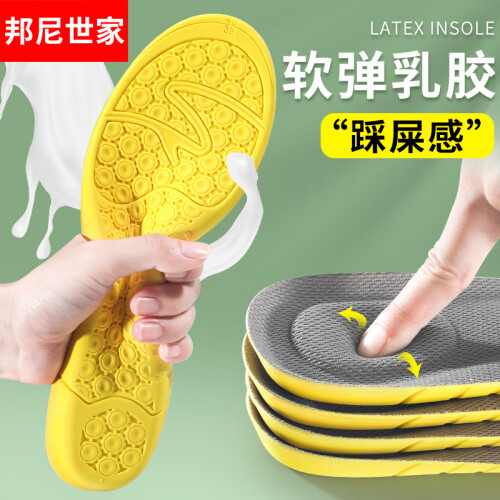 当前的位置: 首页 > 今日值得买 > 邦尼世家2双运动鞋垫男高弹乳胶减震久站防痛女超软底踩屎感吸汗防臭缓震 舒适乳胶 2双 41-42码