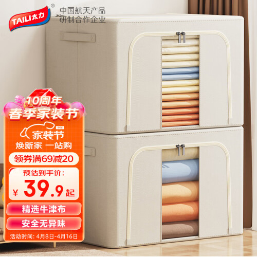 当前的位置: 首页 > 今日值得买 > 太力衣物收纳箱布艺衣服整理箱大号66L被子百纳箱折叠牛津布储物箱1个