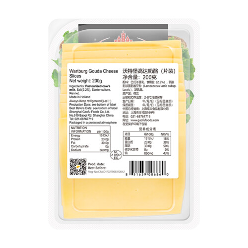 当前的位置: 首页 > 今日值得买 > 沃特堡(wartburg)荷兰进口 高达奶酪片 天然原制 芝士片 200g 冷藏 早餐 三明治