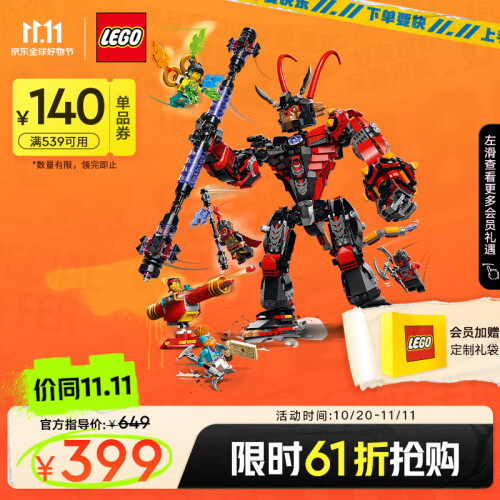 当前的位置: 首页 > 今日值得买 > 乐高(LEGO)积木悟空小侠80033六耳猕猴赤影机甲8岁+男孩儿童玩具圣诞礼物