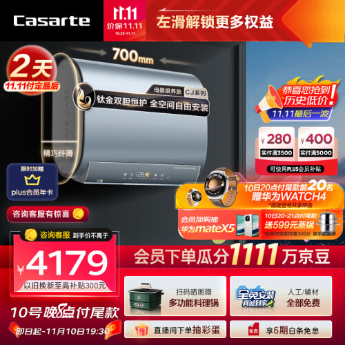 当前的位置: 首页 > 今日值得买 > 卡萨帝(Casarte)60升储水式电热水器家用超薄扁桶型钛金无缝双胆短款双驱速热一级能效CEC6005-CJ5U1【以旧换新】