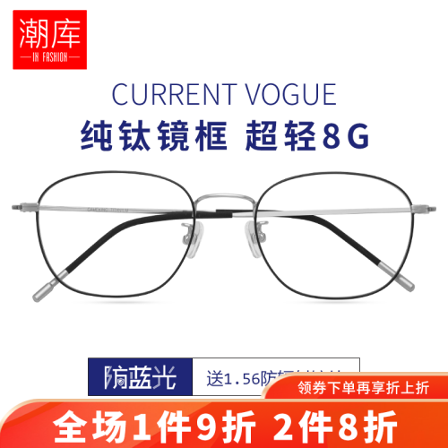 当前的位置: 首页 > 今日值得买 > 潮库 纯钛近视眼镜男女款 防蓝光辐射电脑手机护目超轻框架 8028 黑银色 配1.61防蓝光0-800度